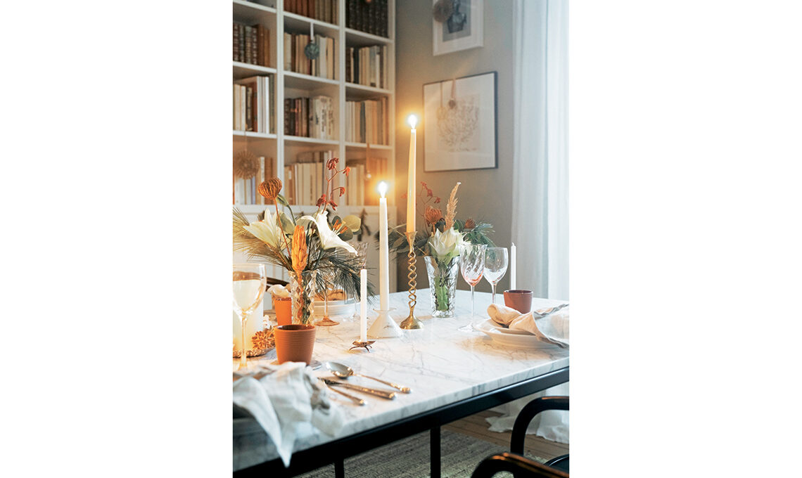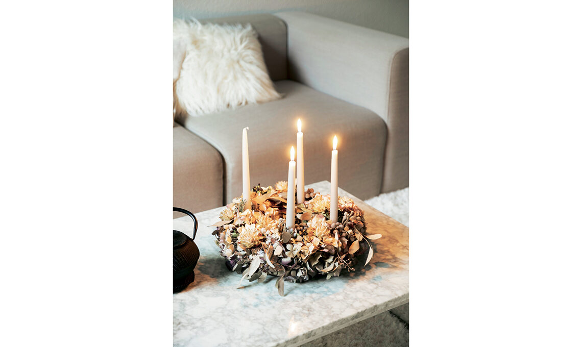 Questo per Helene e Mads sarà il Natale più speciale, per l’arrivo del piccolo Karl Bille. Dopo anni di Natali frenetici, Helene ha deciso di rallentare e di godersi la magia dell’attesa e dei preparativi. L’aroma di cannella e di biscotti appena sfornati, la ricerca dell’albero e la tradizione di intrecciare corone e ghirlande, sono i segni del Natale che sta arrivando. «Ora ho tempo di dedicarmi ai regali. Adoro incartarli con nastri e pizzi che trovo nei negozi di brocantage», racconta Helene.