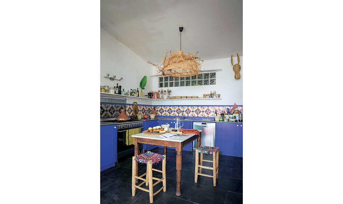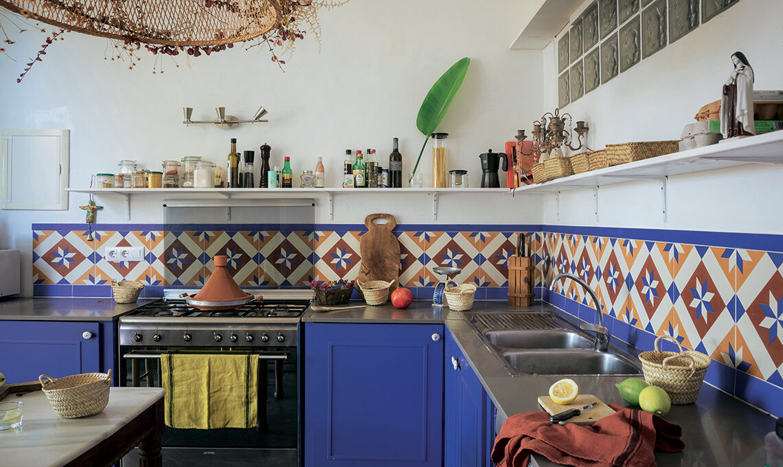 Nella cucina il blu oltremare fa subito estate, senza inibizioni, com’è giusto che sia.