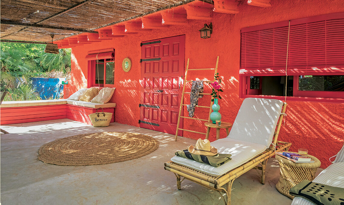 Gli eco-lodge di El Botanico sono tutti in colori squillanti che ricordano Messico, Cile e Costa Rica: questa è Casa Naranja (arancione in spagnolo). Qui il colore non risparmia nulla: porte, infissi, veneziane e panca sono inghiottiti dal color geranio! Ed è la prima idea da copiare...