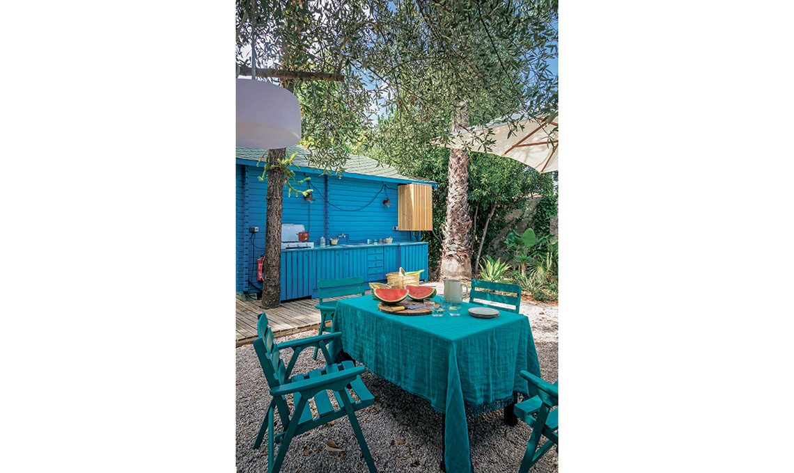 Ogni alloggio ha i suoi angoli magici e la propria cifra stilistica: Casa Turquesa è una cabane di legno immersa nel lato nord-est del giardino, rifatta nel colore originale. In questi casi è meglio utilizzare uno smalto opaco specifico, realizzabile in colori forti e autoregolante dell’umidità, come Deck di [The Paint Makers & Co]: assicura protezione di lunga durata e offre un effetto super mat.