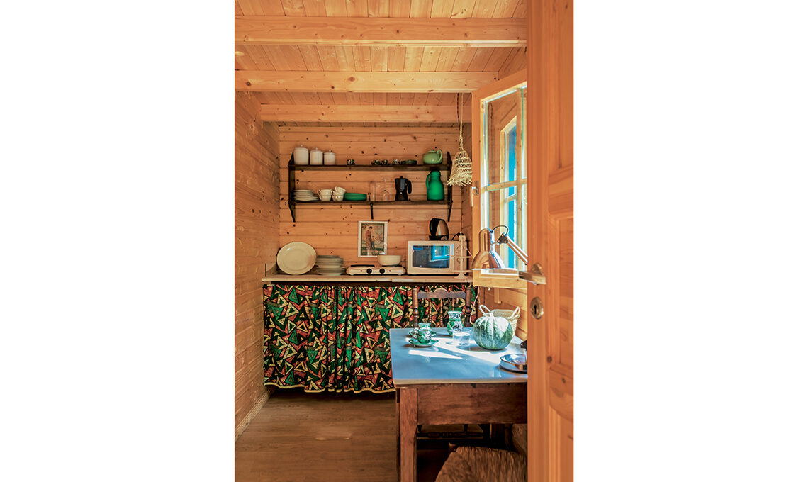 In vacanza la cucina può ‘spogliarsi’ delle sue sovrastrutture: basta allestirla con mensole, un fuoco da campeggio e un forno a microonde.