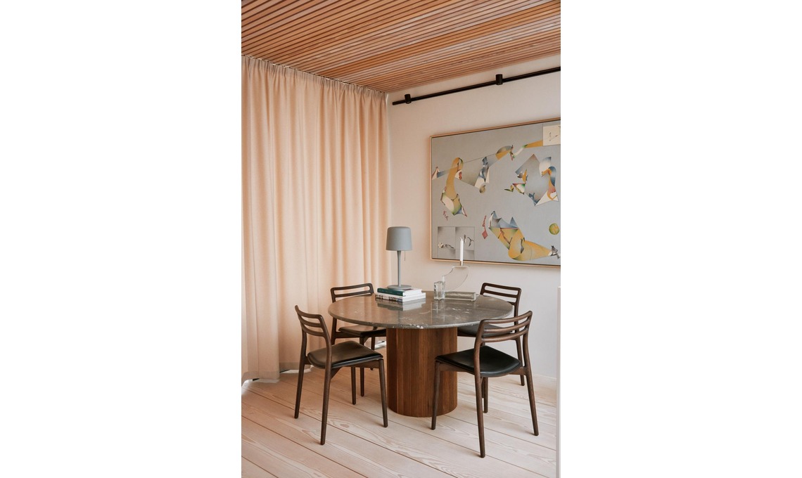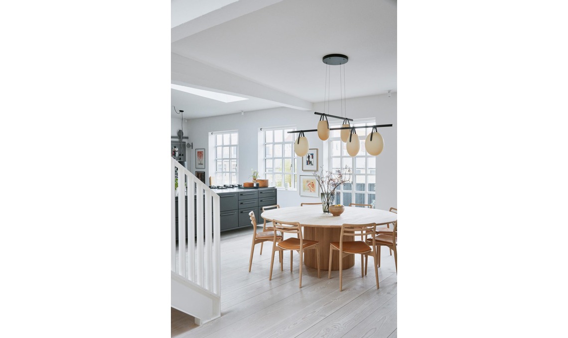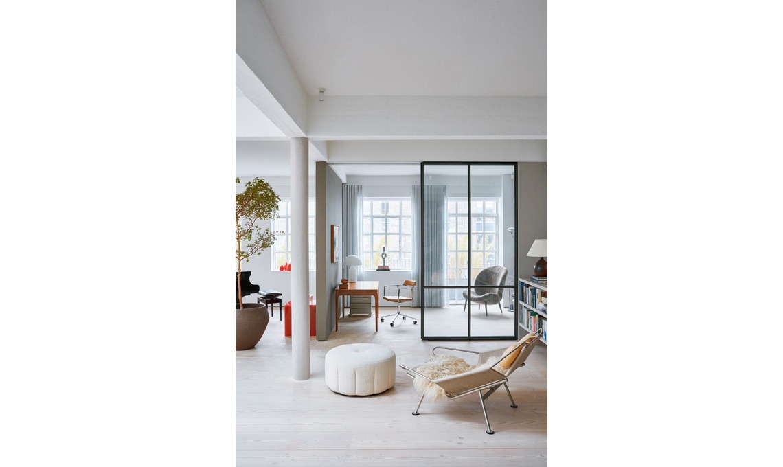 Con l’aiuto dell’interior designer Julie Mølsgaard si è affrontata la sfida più grande: dividere lo spazio in zone ‘naturali’ che risultino sempre accoglienti. Lo stile nordico è stato osservato con rigore, a cominciare dal parquet chiarissimo, ma tessuti materici e tocchi di colore saturo rendono domestico l’ambiente industriale.