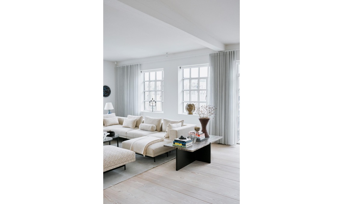 Sofa [Vipp], tavolino [Caravane].