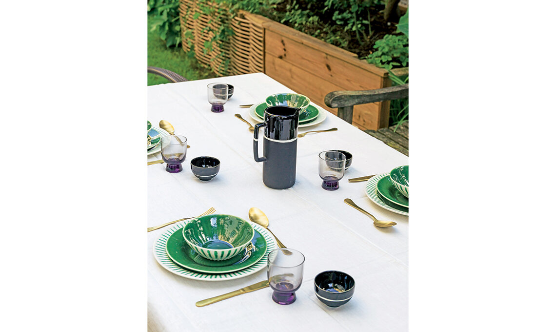 Stoviglie e tovaglia delle coll. Impression e Sicilia di [Maison Sarah Lavoine].