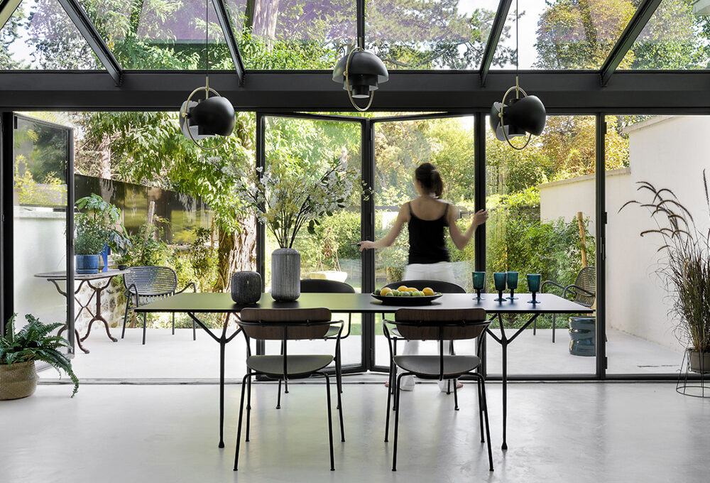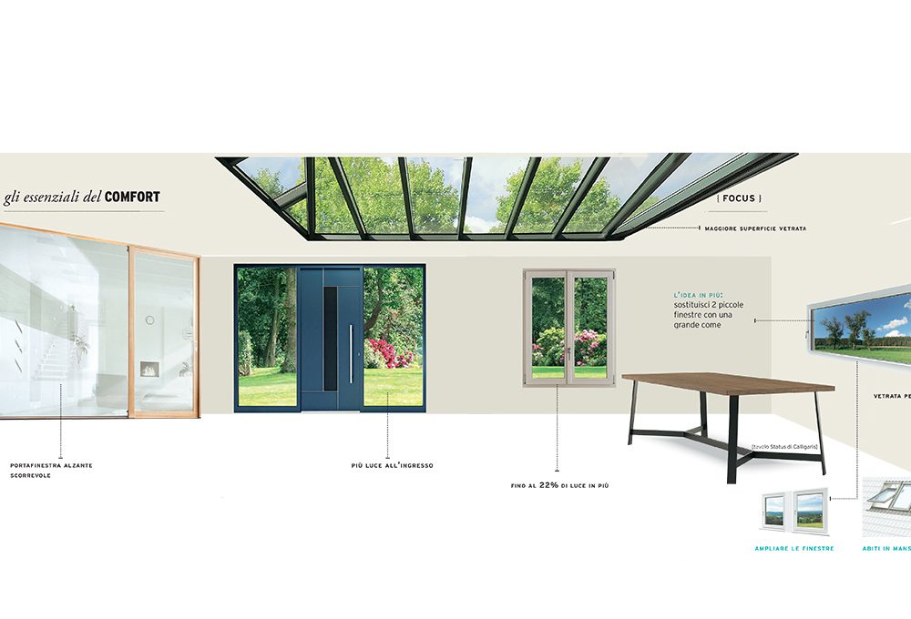 Le grandi finestre della casa danno la possibilità di seguire il cambio di luce legato alle diverse ore del giorno e alle variazioni meteorologiche: questo influisce positivamente sull’umore e regala armonia.