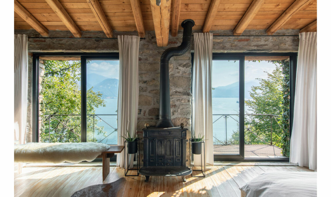 In fase di ristrutturazione, dove è stato possibile, le finestre originarie dell’edificio sono state trasformate in grandi porte a vetri scorrevoli... con vista lago!