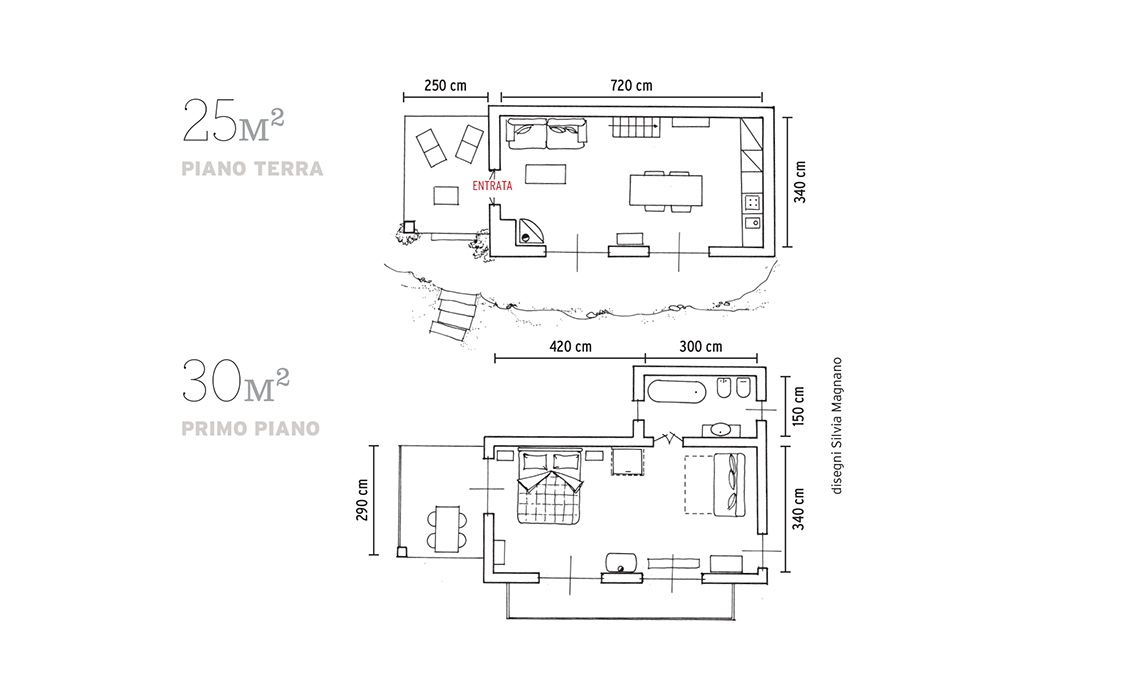 Arredare con la luce. È sempre importante studiare l’esposizione della propria abitazione: qui il primo piano risulta meno illuminato rispetto al secondo, con la stanza da letto e il bagno, che è invece pervaso di luce per l’intera giornata.