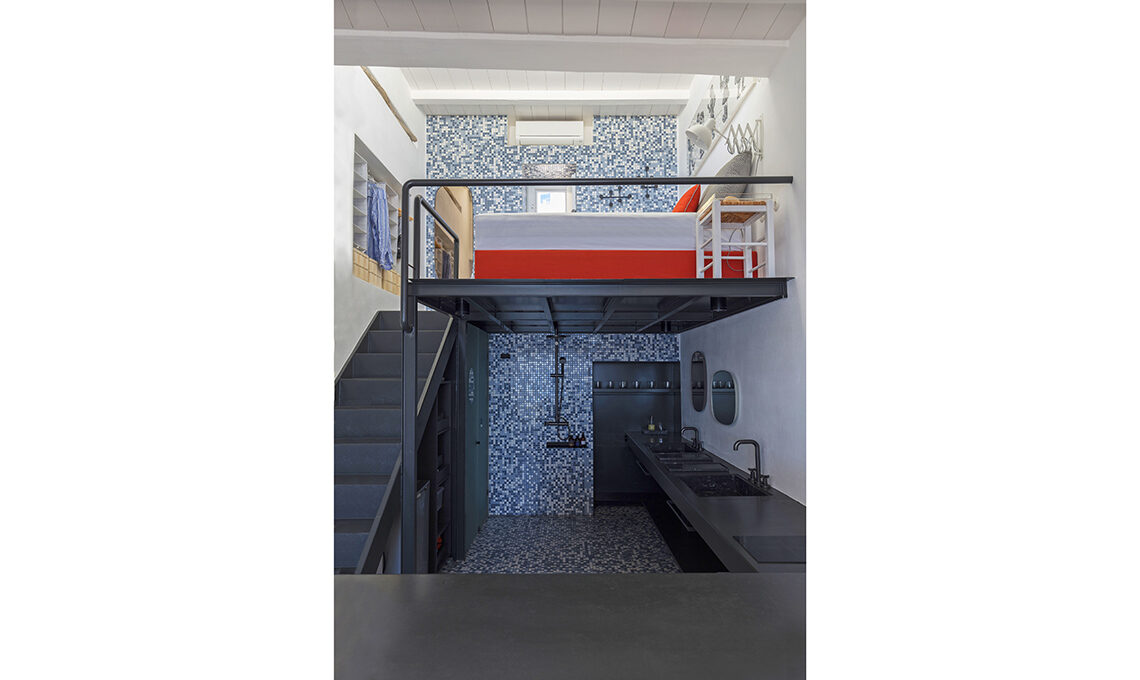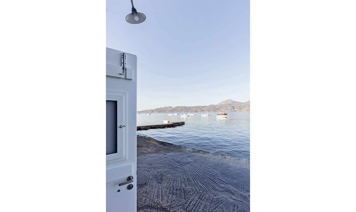 In Grecia, una ex-rimessa per barche di appena 25mq diventa casa di vacanza, grazie a soluzioni inedite e geniali, a cominciare da un curioso bagno 'diffuso'...