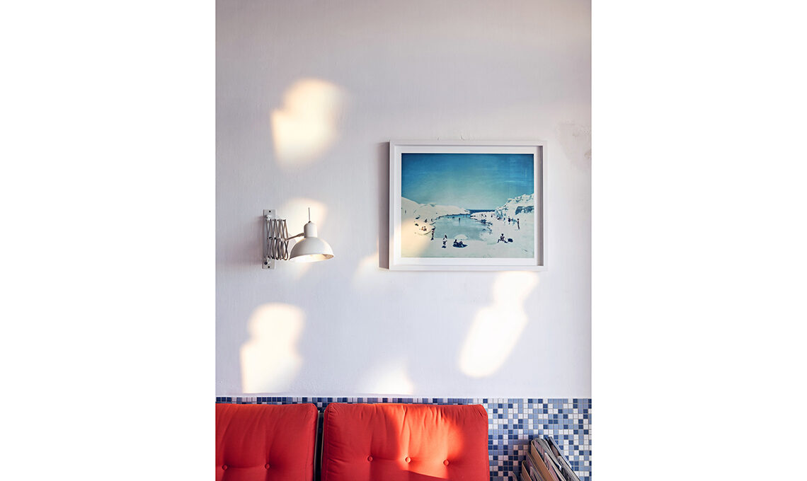 Il mosaico a pavimento e parete crea un effetto piscina: gli avreste mai abbinato dei divani aragosta? Be’, proprio questo è il tocco décor che fa la differenza!