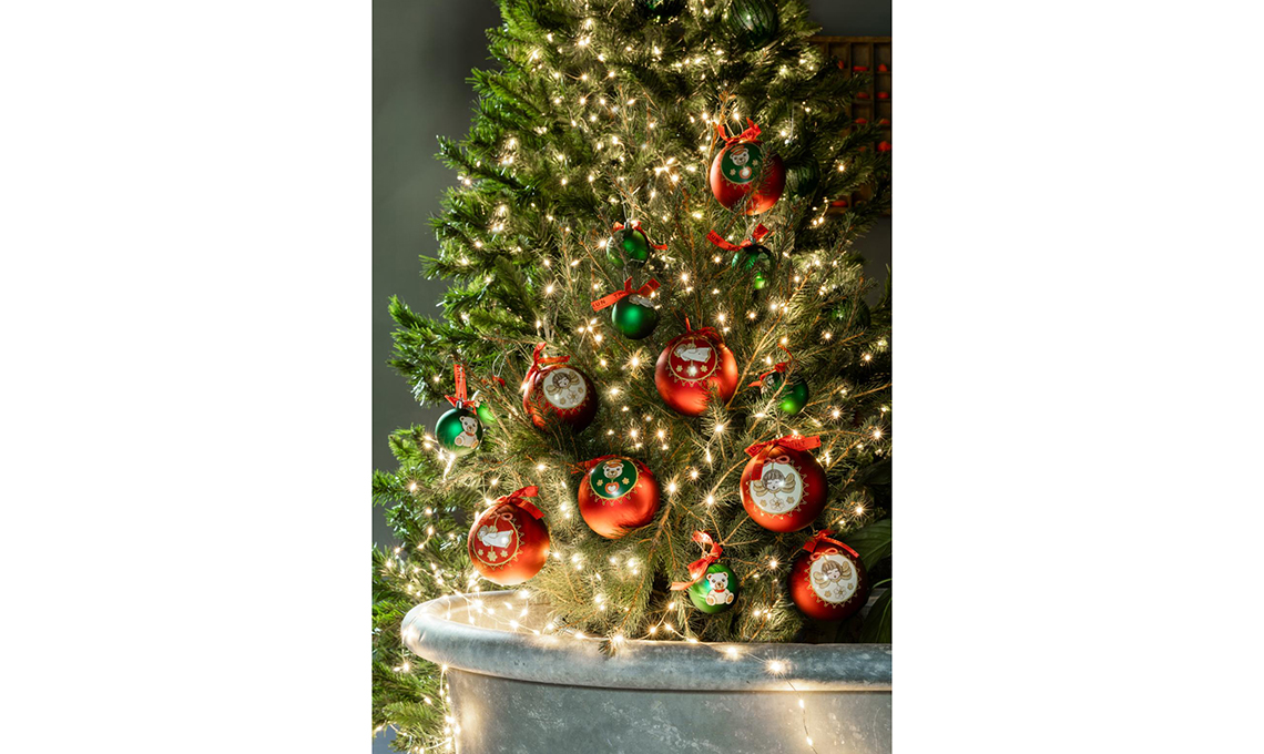 Tante, tantissime rispetto alle sfere rosse, le lucine dorate attualizzano il look dell’albero tradizionale. Recuperata in un mercatino, la vecchia vasca da bagno in latta è stata immaginata e allestita come cachepot.