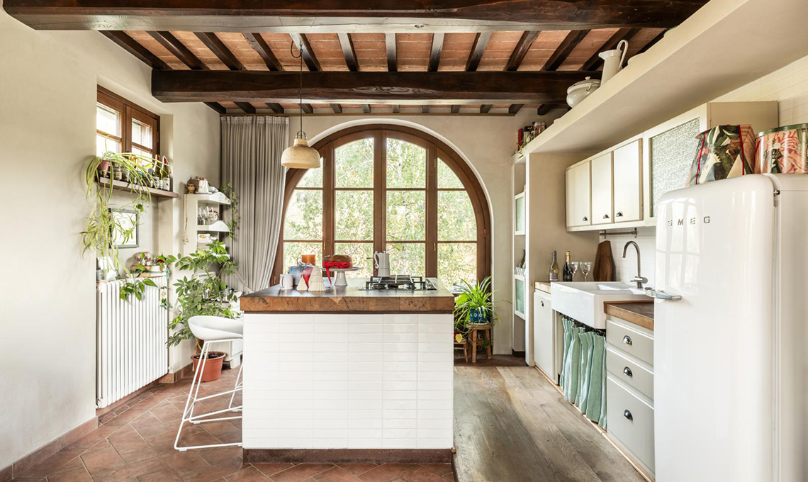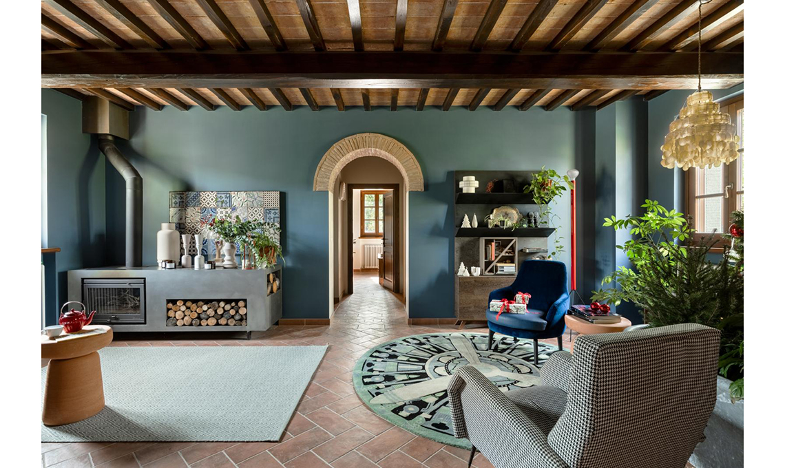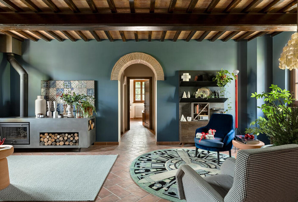 Una villetta anni '90 rinasce sotto il guizzo creativo del proprietario, che ha valorizzato i soffitti con travi a vista e il pavimento rustico con arredi su misura e buon design. La cornice perfetta per un Natale all'insegna del comfort.
