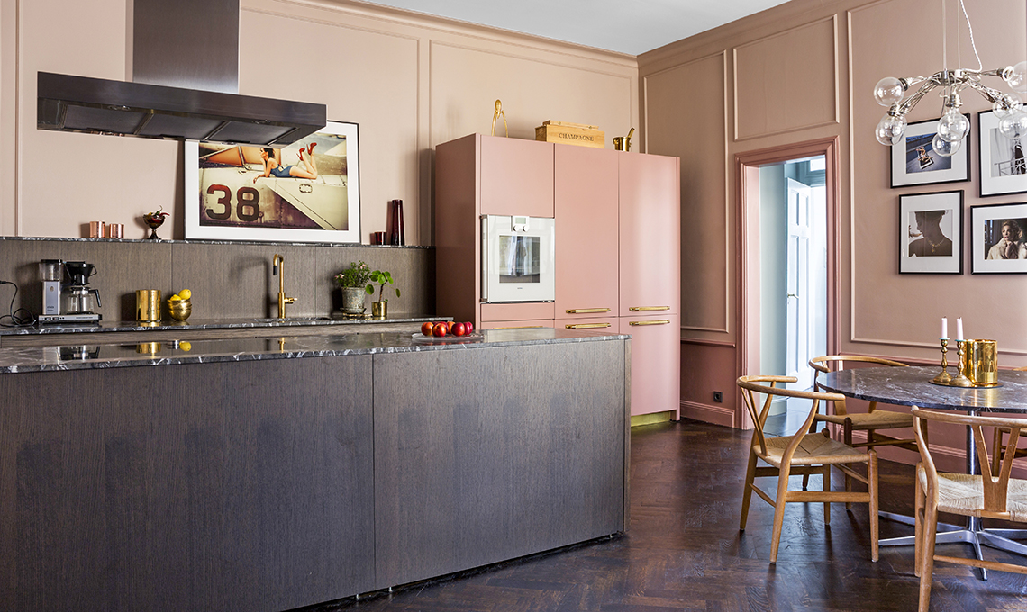 ventilatore, forno e piano cottura [Gaggenau], faretti [Flos], sedie CH24 Wishbone Chair [Carl Hansen & Søn da €838]. Il tavolo utilizza il ‘piede’