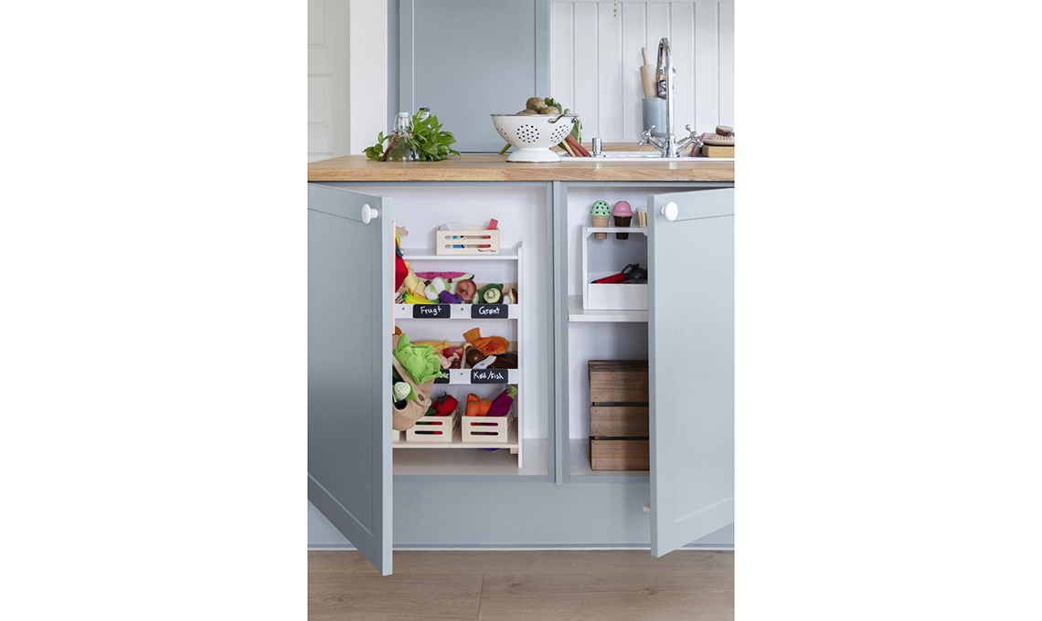 con la mini bancarella del mercato e gli attrezzi da piccoli chef! Poi, quando i bambini saranno cresciuti, quello spazio tornerà utile per la dispensa.