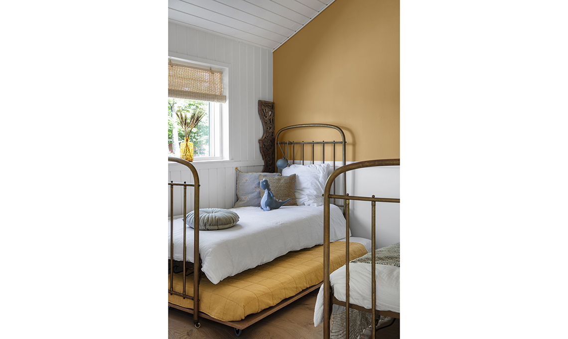 dei bimbi arredata con mobili di recupero. I letti gemelli vintage in ottone su ruote sono il pezzo forte.