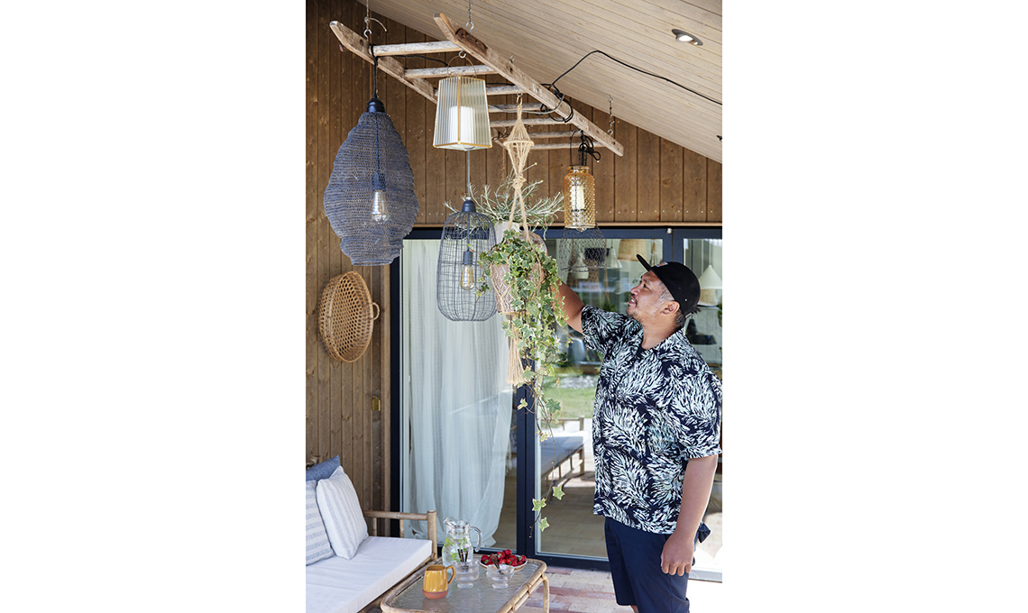 e Lambang hanno allestito una tenda, una mini iurta, che diventa nella bella stagione stanza in più e dépendance per gli ospiti. All’interno tutti i comfort: il letto con zanzariera di garza e un angolo lettura con poltroncina, coffee table e mobiletto in stile dipinto di bianco. A terra, un mix di stuoie e lanterne portacandele.