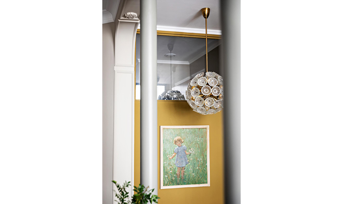 Nel complesso, la disposizione è stata preservata, a eccezione delle pareti della cucina, che sono state abbattute per creare un ampio soggiorno che accoglie anche la sala da pranzo. «Volevo riscrivere la storia del luogo, progettare un’ambientazione che avrebbe potuto essere quella di sessant’anni fa» racconta Delphine. Con l’aiuto di Jacques, che padroneggia molto bene Sketchup e software 3D, ha ripristinato l’allure del luogo inserendo nuove modanature e rosette, pavimenti in legno verniciato e boiserie.