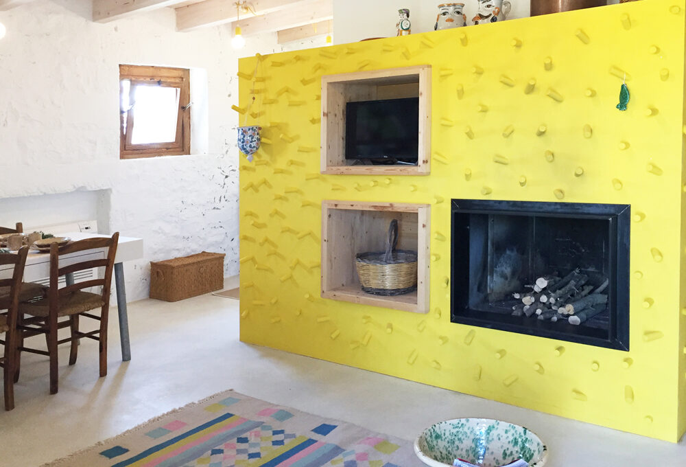 Dipinto di bianco, il puntello è una scelta alternativa al classico pilastro. È un omaggio ai lavori di recupero
