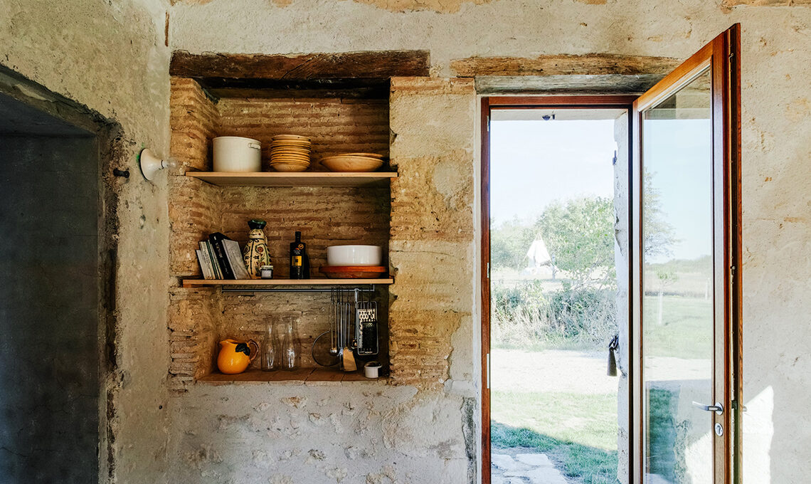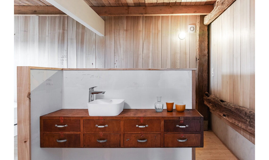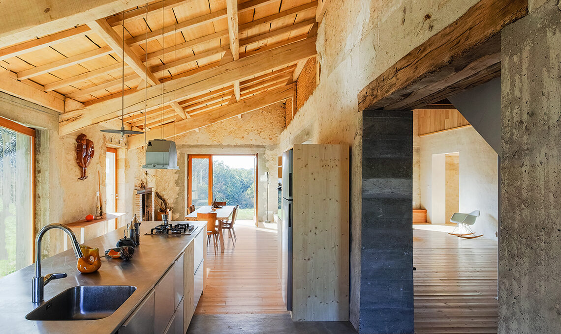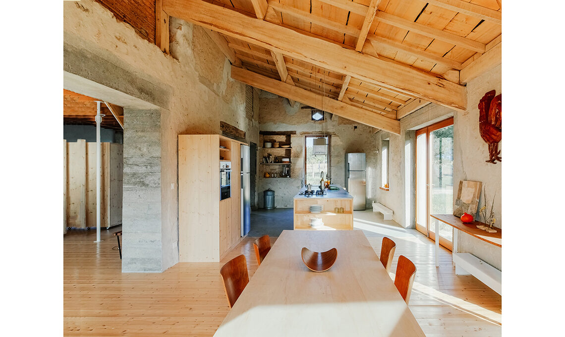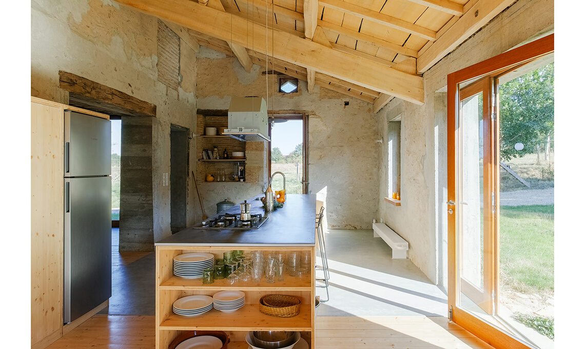 Léa Casteigt e Alessandro Baiguera sono il duo di Atelier Boteko, studio di architettura di stanza a Parigi e Aillas, non lontano da Bordeaux: un duplice contesto, uno metropolitano e l’altro rurale, che li ha stimolati verso scelte progettuali consapevoli dal punto di vista dell’impatto ambientale, come il recupero di questa fattoria ad Aillas.