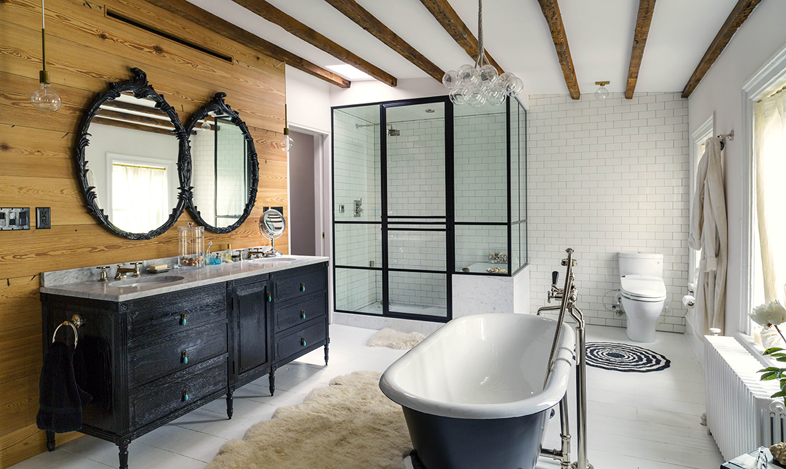 Le vasche coi piedini in stile vintage sono una vera tendenza da tempo ormai. Puoi ambientarla come hanno fatto qui: gli specchi sono stati
