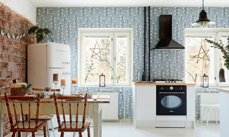 e una zona pranzo dal gusto hipster, con sedie che ricordano quelle