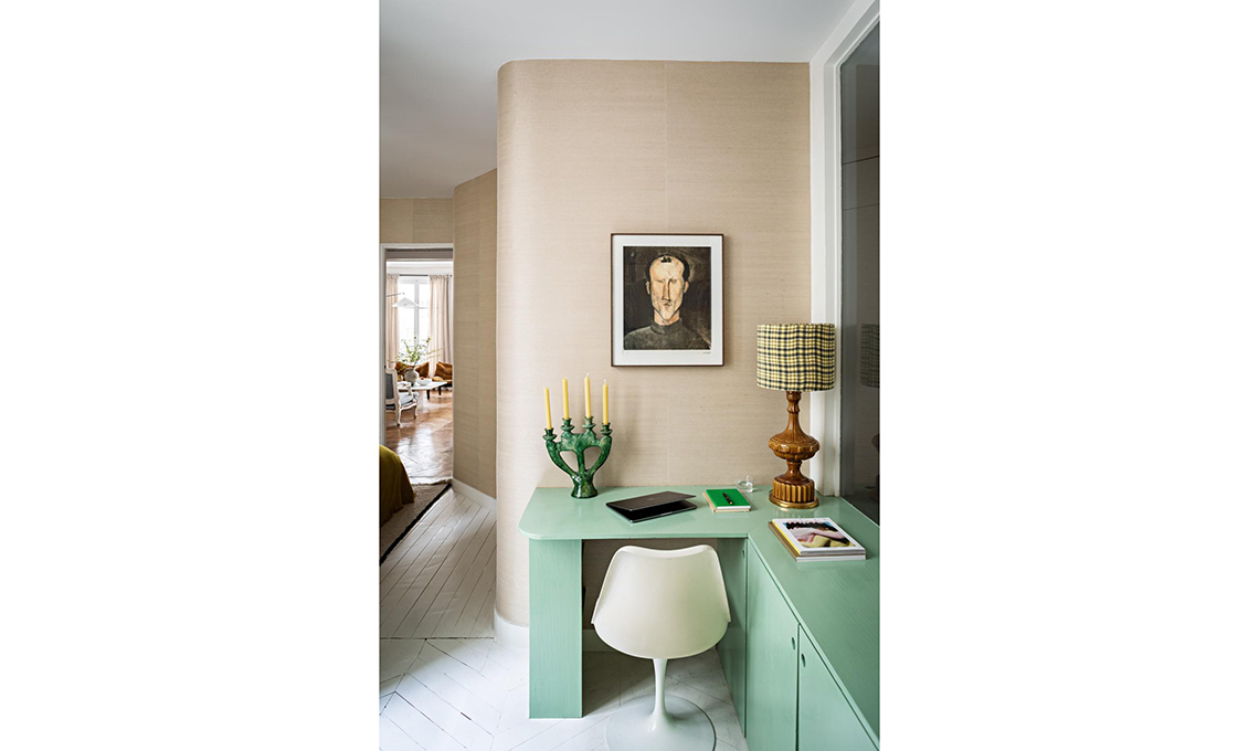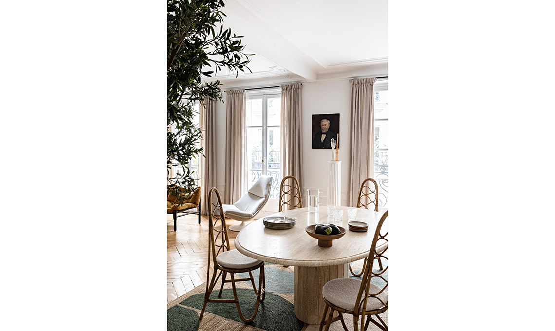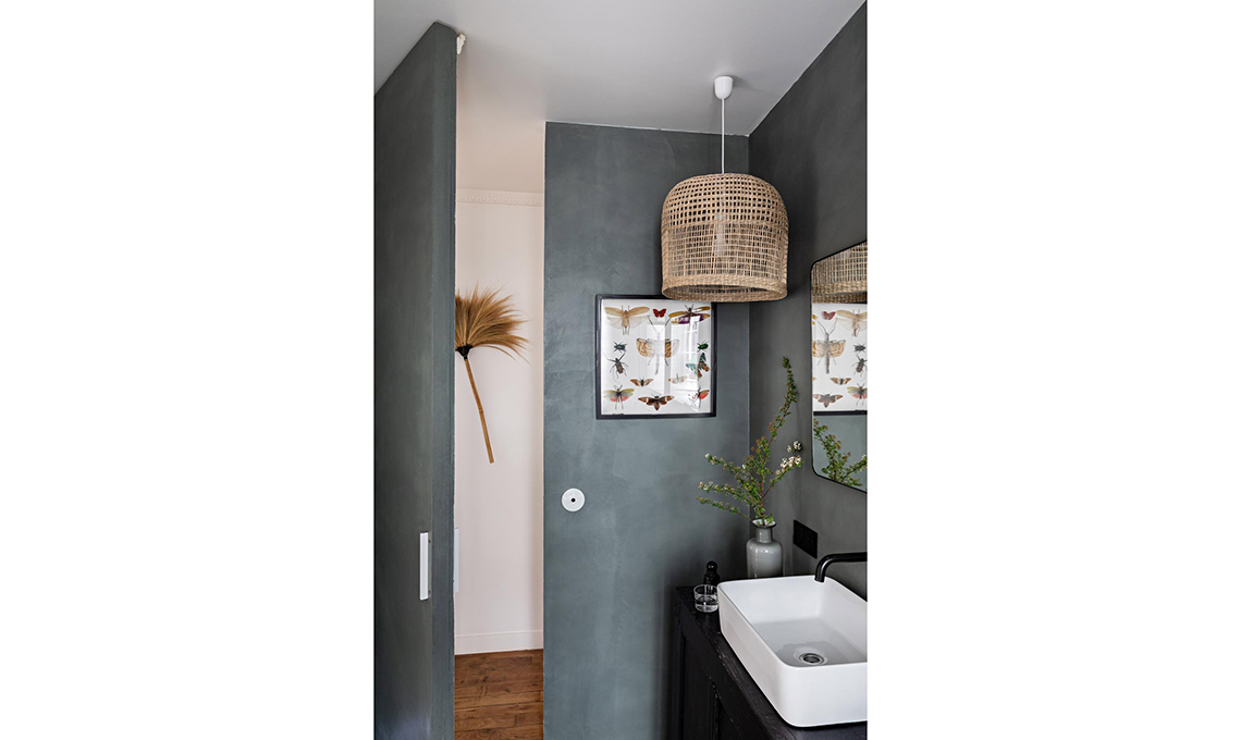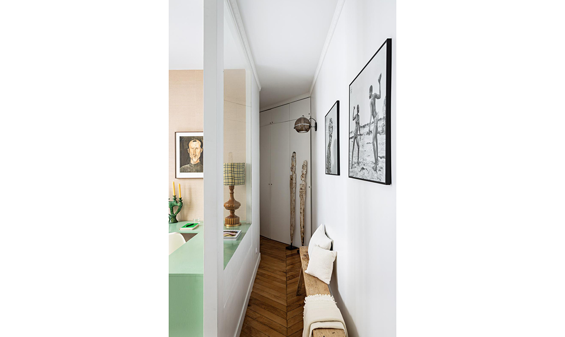 Dopo molti confronti, l’architetto Bertille Bordja propone alla coppia ben 5 progetti. Quello scelto reinventa gli spazi e prevede un open space e un corridoio, tipico degli edifici hausmanniani del Secondo Ottocento, ricreato ex novo lungo la parete esterna, per collegare l’ingresso con il retro dell’appartamento, dove c’erano due camere da letto.