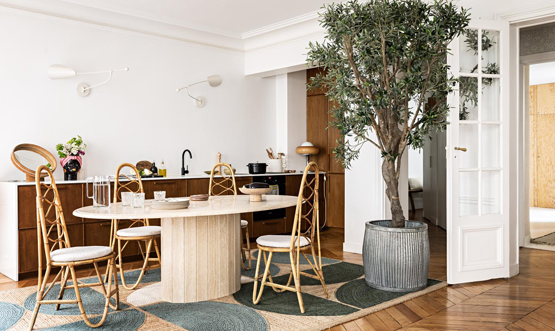 «Sono letteralmente pazza per i cambiamenti, tutto qui è già stato spostato o sostituito almeno dieci volte! Mi piace che le mie stanze siano vive e in perenne movimento» dice Charlotte. E così, sullo sfondo di pareti immacolate, sfila un mix di pezzi che intreccia epoche, stili e materiali diversi, che sono la cifra stilistica della casa. Con un surplus di piante e di rattan che dà l’idea di essere in una perenne vacanza!