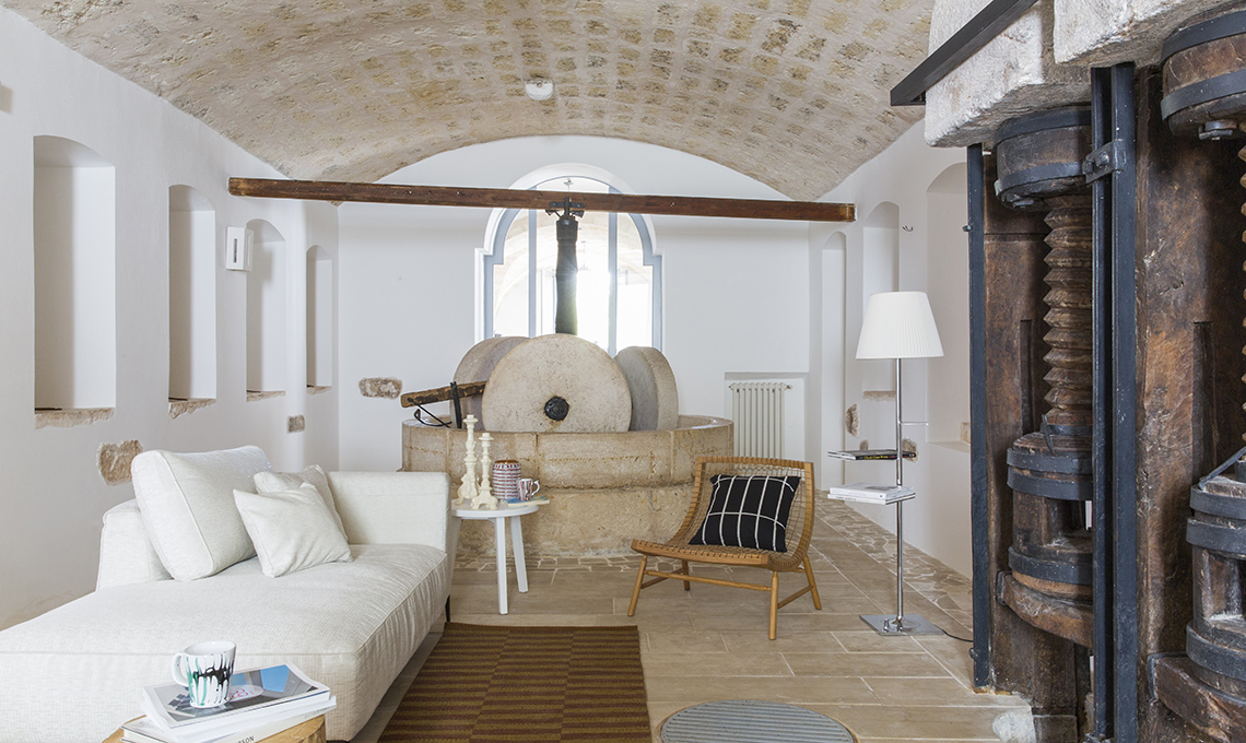 Accostare nuovi pavimenti a pareti secolari, incastonare le esigenze odierne nella geometria dei locali di un tempo: un restauro conservativo è tutto questo e non solo. Fondamentale è rispettare il ‘genius loci ’, lo spirito del luogo: ecco perché, con la nostra Cristina Gigli, al progetto ha partecipato lo studio VG Architetti di Pezze di Greco (BR), che opera da anni sul territorio pugliese