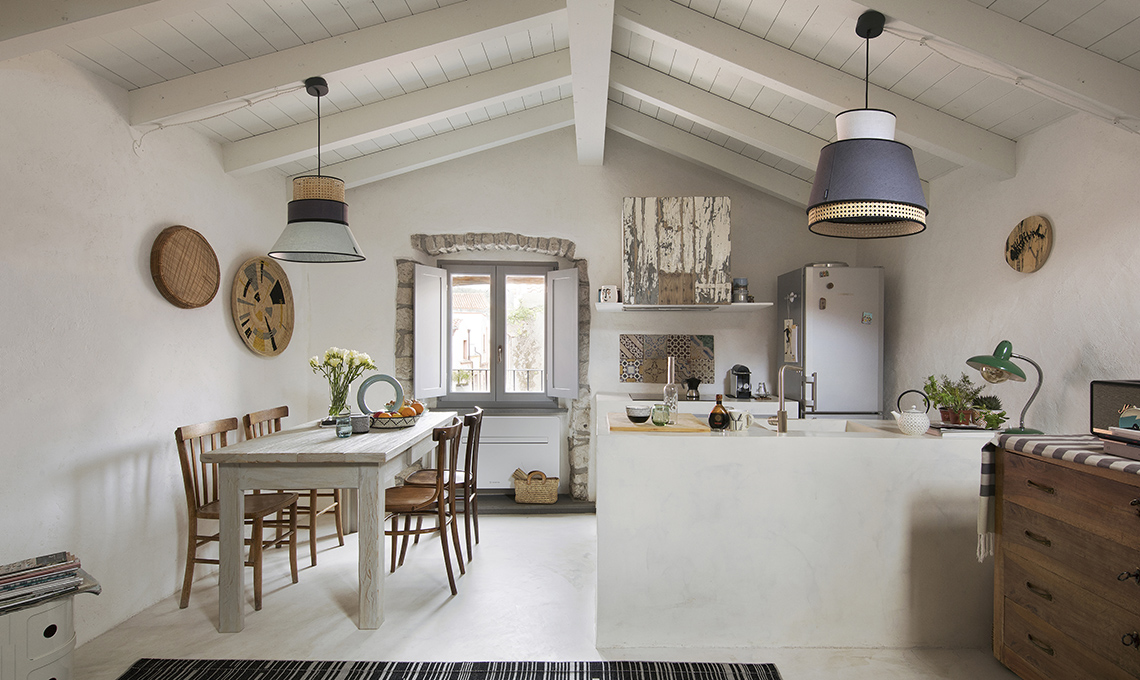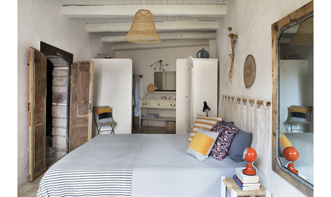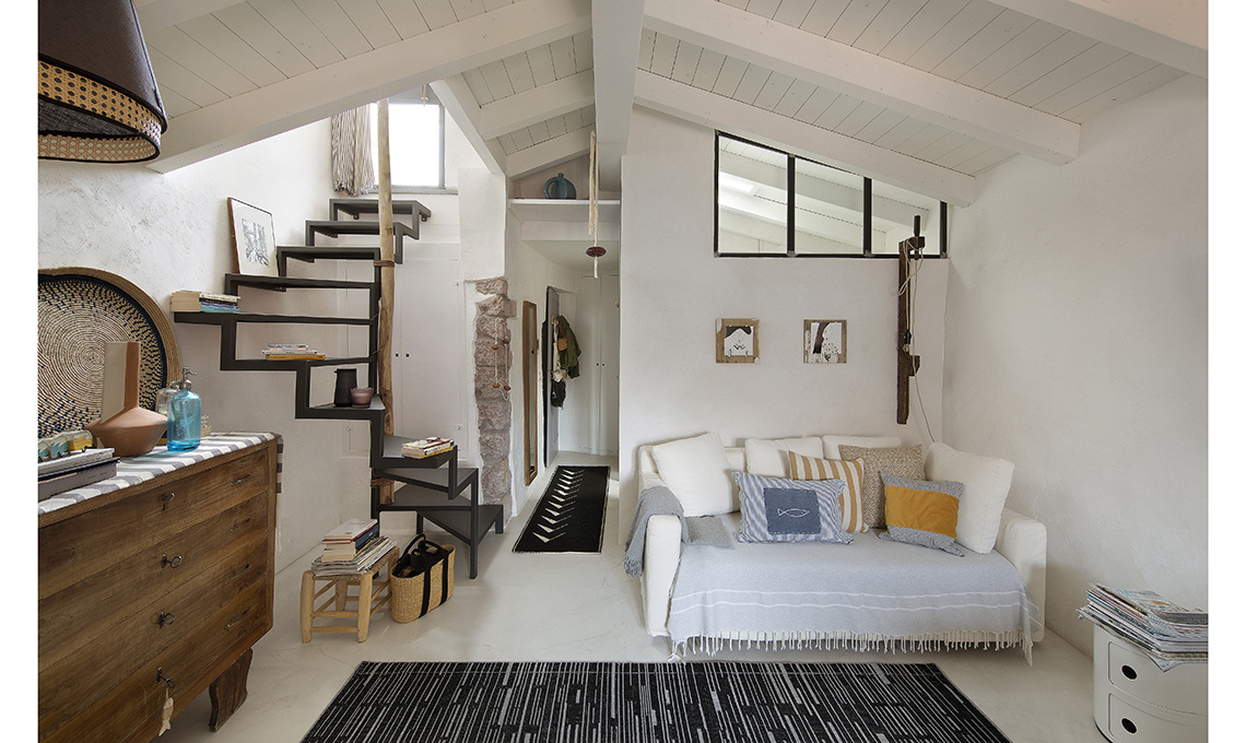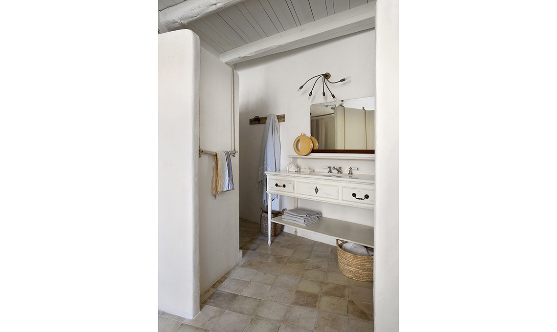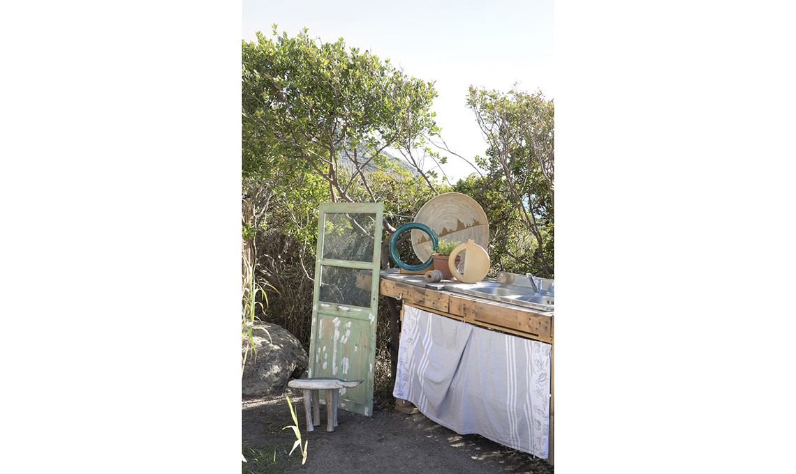 Il décor ha sempre un che di spontaneo e naturale, dalle ceste contadine alla scaletta, dai vasi di forma austera al séparé in paglia.