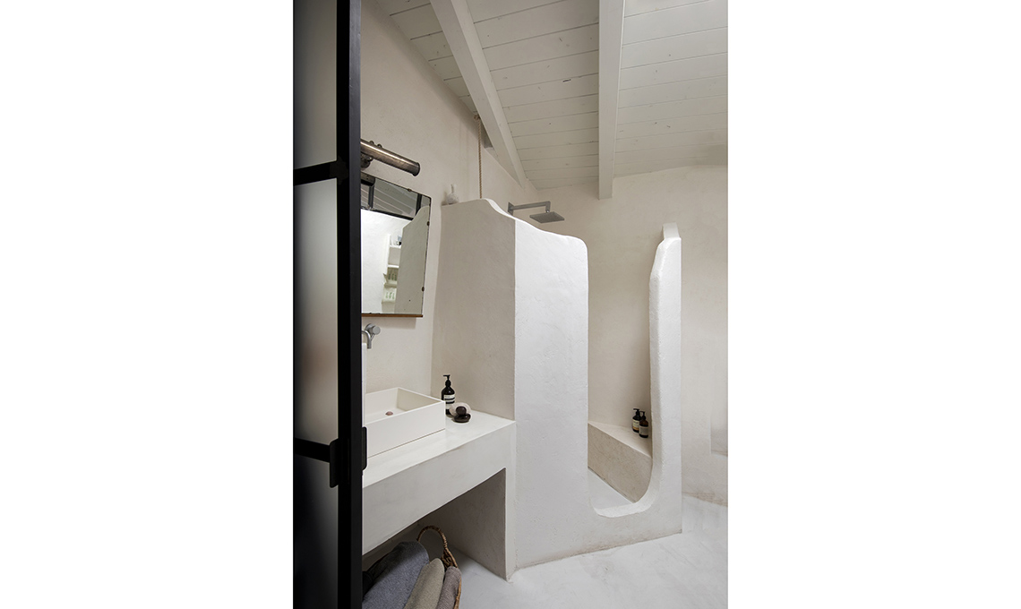 Ogni viaggio è stato fonte di ispirazione, vedi la doccia ’stile Grecia’, come la definisce Monica, in resina fibrorinforzata con pittura vetrificante.