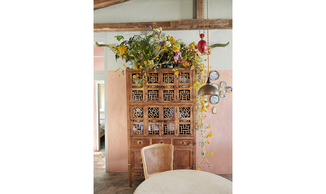 Piuttosto che abbinare colori neutri o terrosi ai legni tropicali dei mobili etnici (mogano, teak, palissadro, acacia, sheesham), Dané ha scelto di creare un contrappunto di stile usando nuances fresche, quasi sorbetto: la finitura sfumata si può ottenere utilizzando RhinoLite® CreteStone® [Gyproc], un intonaco di finitura che viene applicato con una spatola d’acciaio, addizionato con pigmenti color pesca, anguria, menta, giallo cedro...
