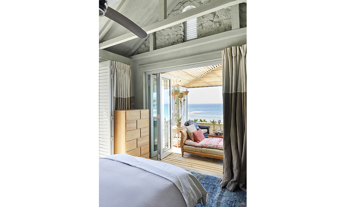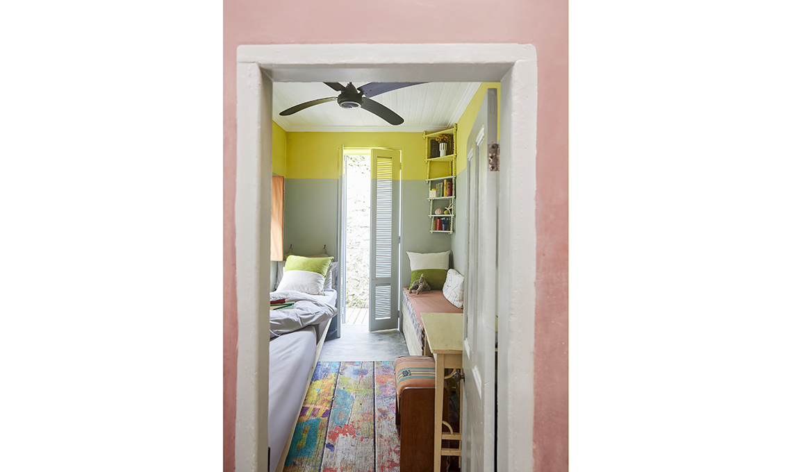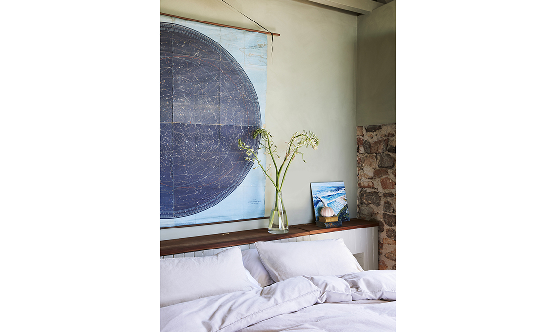 Parte di una parete della camera di Dané e Chris è stata portata a nudo per ridare luce alla muratura originale, mentre il soffitto è stato restaurato e ridipinto con uno smalto effetto calce.
