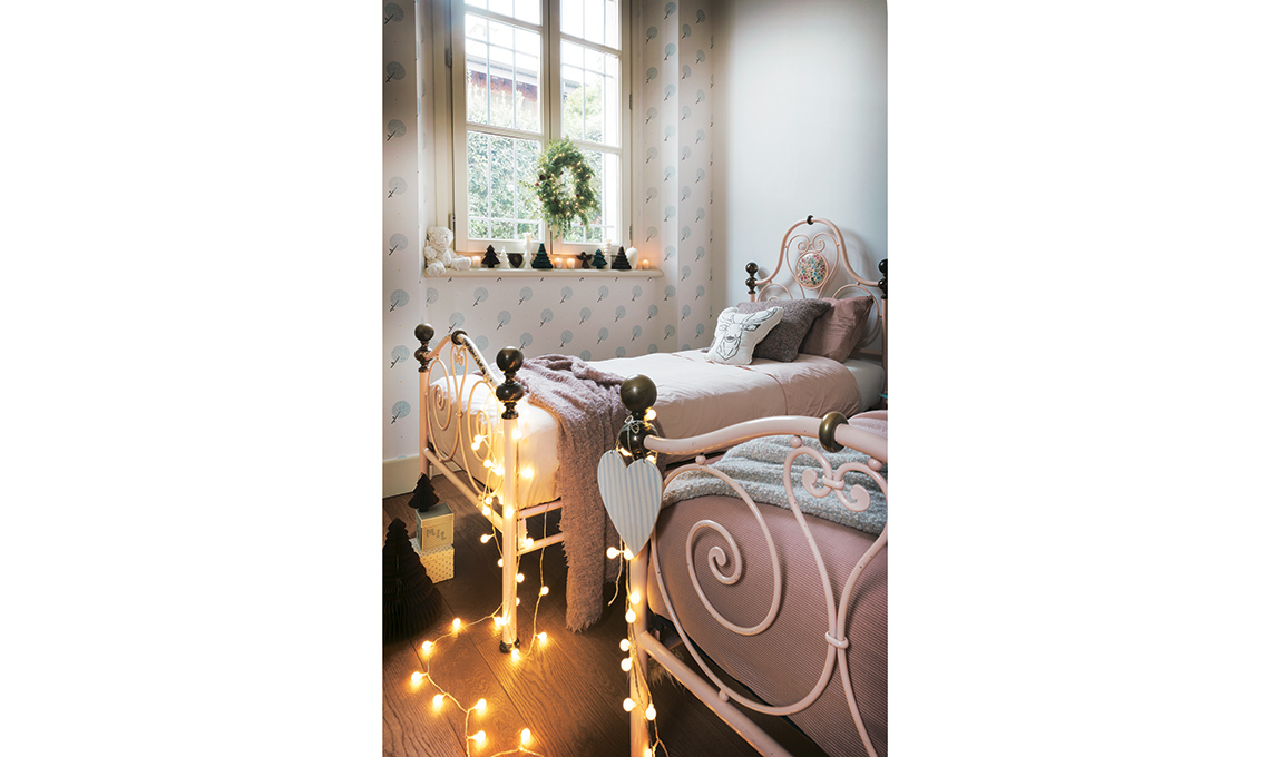 la ghirlanda verde è sulla finestra assieme alle candele, gli alberelli in carta spuntano ovunque e che dire della magia dei fili di luce?