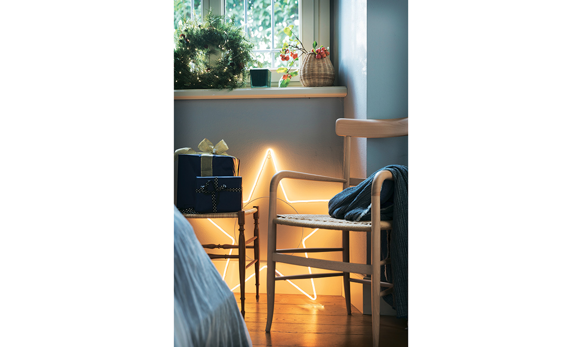 Tutto è pronto per un brindisi grazie all’atmosfera romantica e festosa creata da candele, fili di luce e dalla stella luminosa.