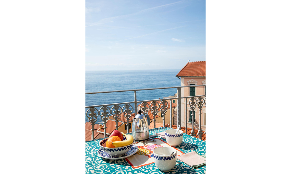 Lara oggi insegna a Innsbruck, ma ha trascorso l’infanzia tra i carruggi del centro storico di Imperia ed è qui, nel borgo di Parasio, che ha deciso di fare ritorno ogni estate: dalle finestre, belle come quadri, il mare sembra entrare in casa, sempre uguale, sempre diverso.