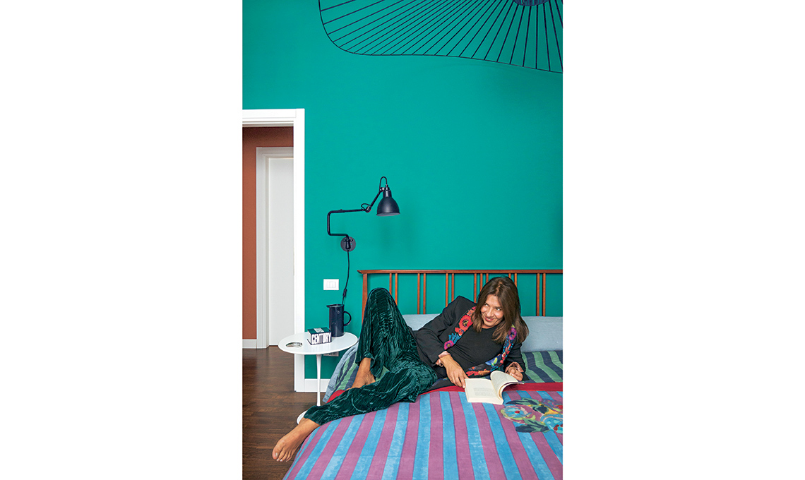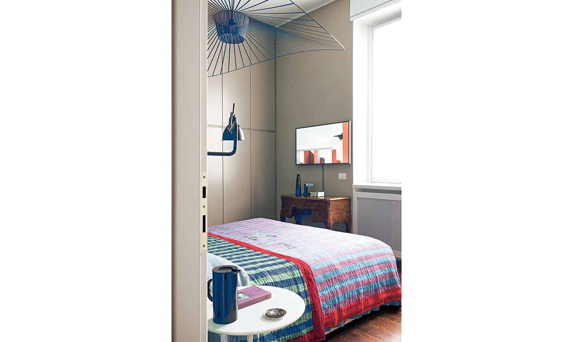 più in produzione di [Pedano], copriletto [Lisa Corti], tavolino Tulip [Knoll]. Luce a braccio Lampe Gras N°303 [DCW Éditions € 348].