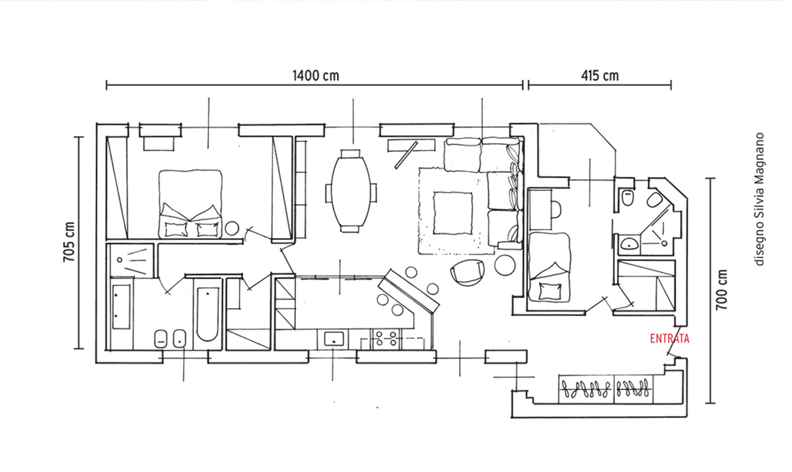 Entrambe le camere da letto hanno una metratura contenuta ma si ritagliano un bagno privato, una cabina armadio e un armadio su misura; mentre la privacy è garantita dalla disposizione degli spazi.