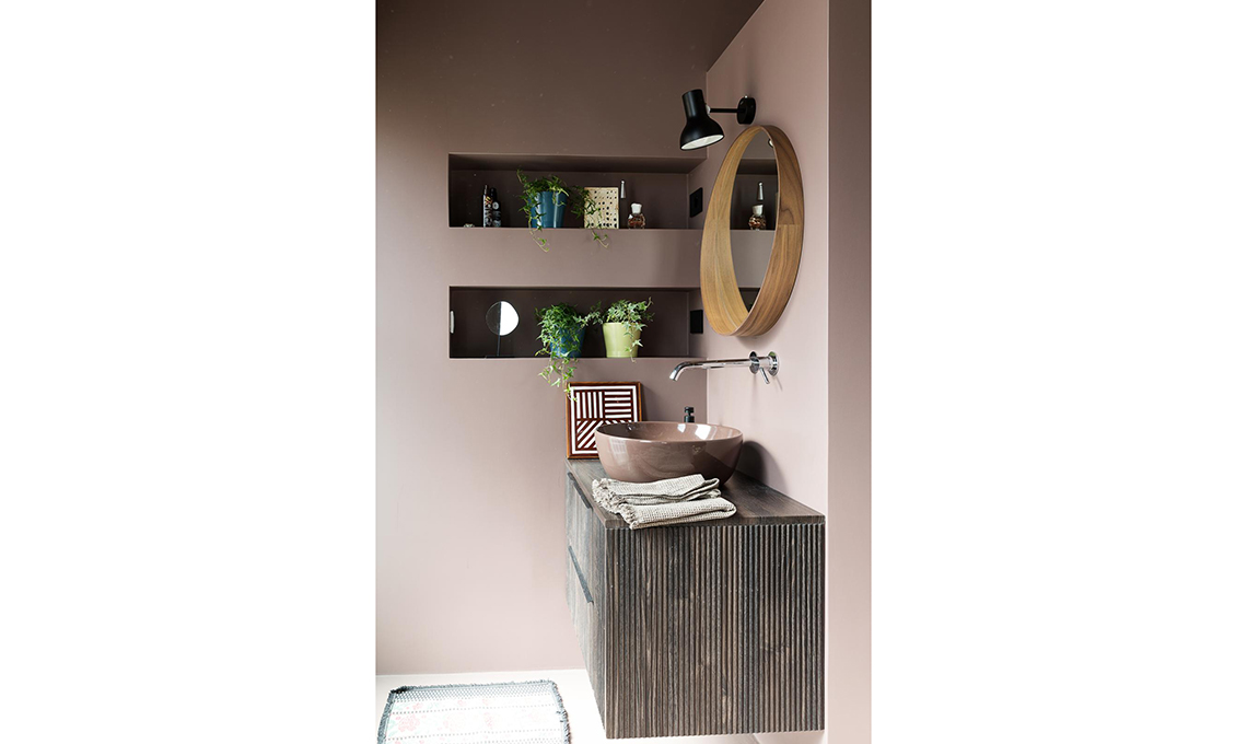 Piastrelle PAPER41 PRO Jane [41zero42], cementoresina [Kerakoll], mobile lavabo Vertigo [Puntotre Arredobagno], specchio Stockholm [Ikea], rubinetti [Fantini], sanitari [Ceramica Flaminia], lampada da parete Tipo 75 [Anglepoise da The Cool Republic].