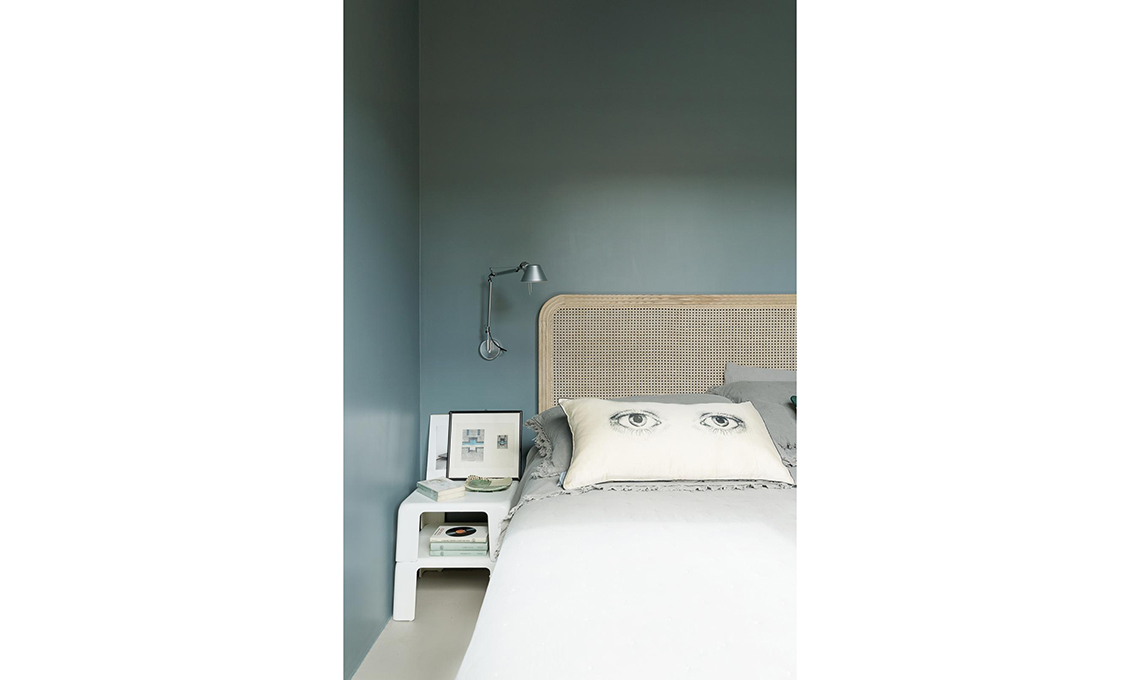 zona giorno sono: Oval Room Blue, Light Blue e Castle Gray [Farrow & Ball]. Divano Retro Sofa [HKliving], poltrona Hai [Hem su designrepublic.com]. Lampade sospensione Aim [Flos].