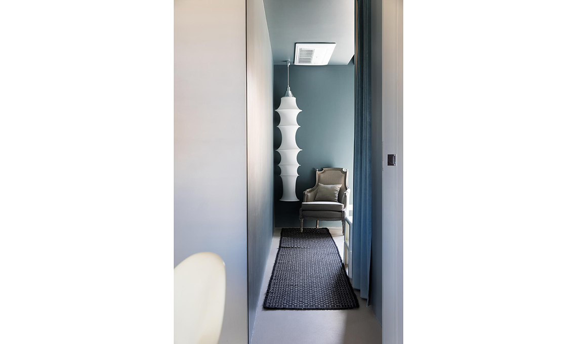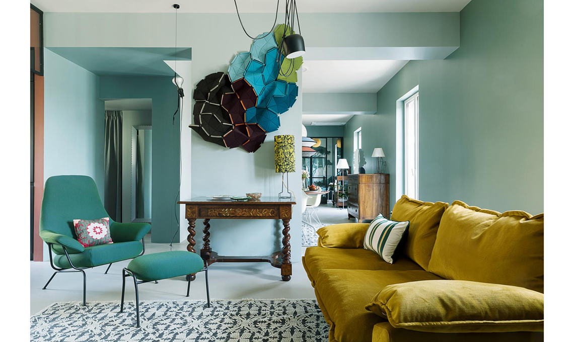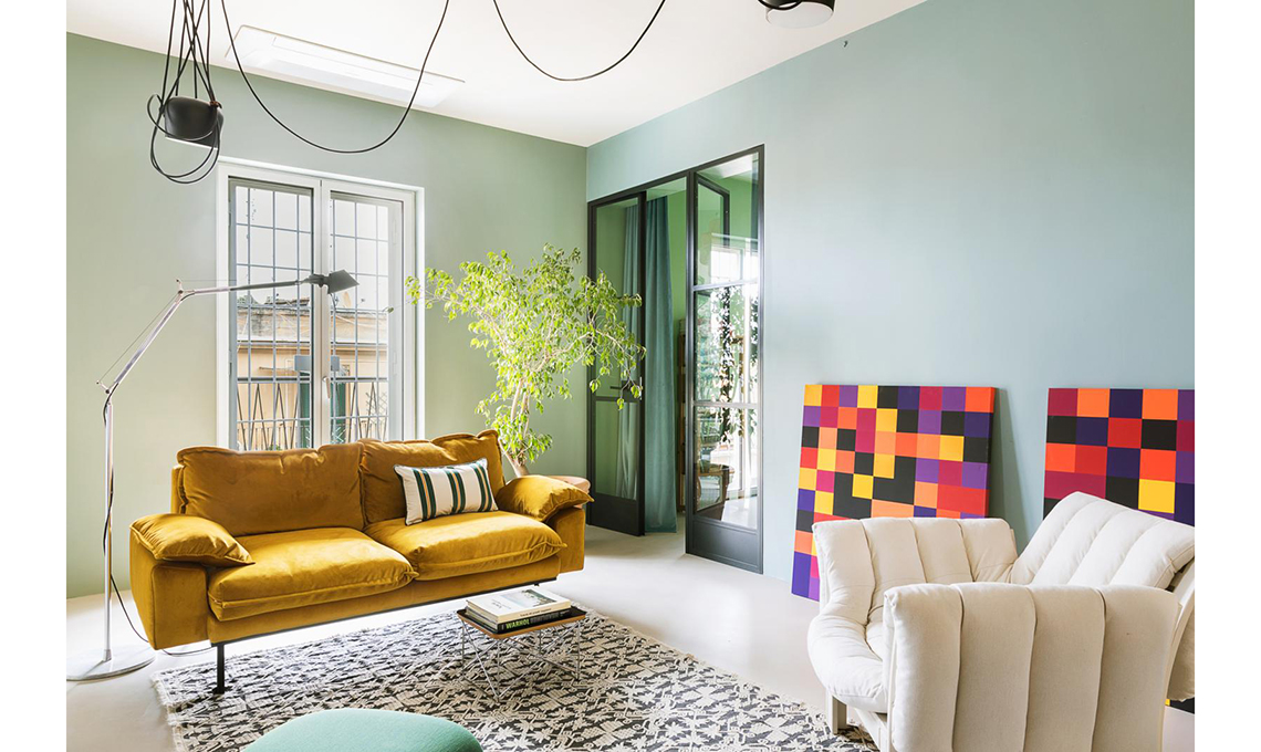 Il progetto colore è molto caratterizzante, punta su una gradazione di azzurri e verdi più o meno intensi: l’effetto finale è immersivo. Lo styling decorativo finale è opera della stylist CF Cristina Gigli.