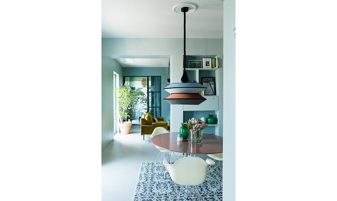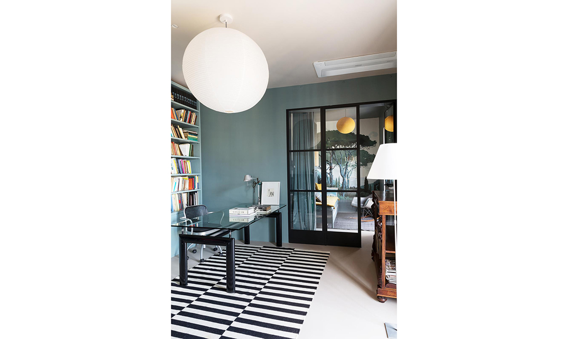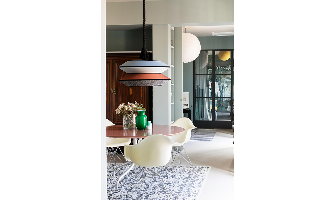 non si accede da un corridoio ma direttamente dalla zona pranzo, e anche quella è stata un’alternativa architettonica a lungo discussa e studiata». Lampada sospesa Falkland 165 [Danese Milano su designrepublic.com]. Colore De Nimes [Farrow&Ball].