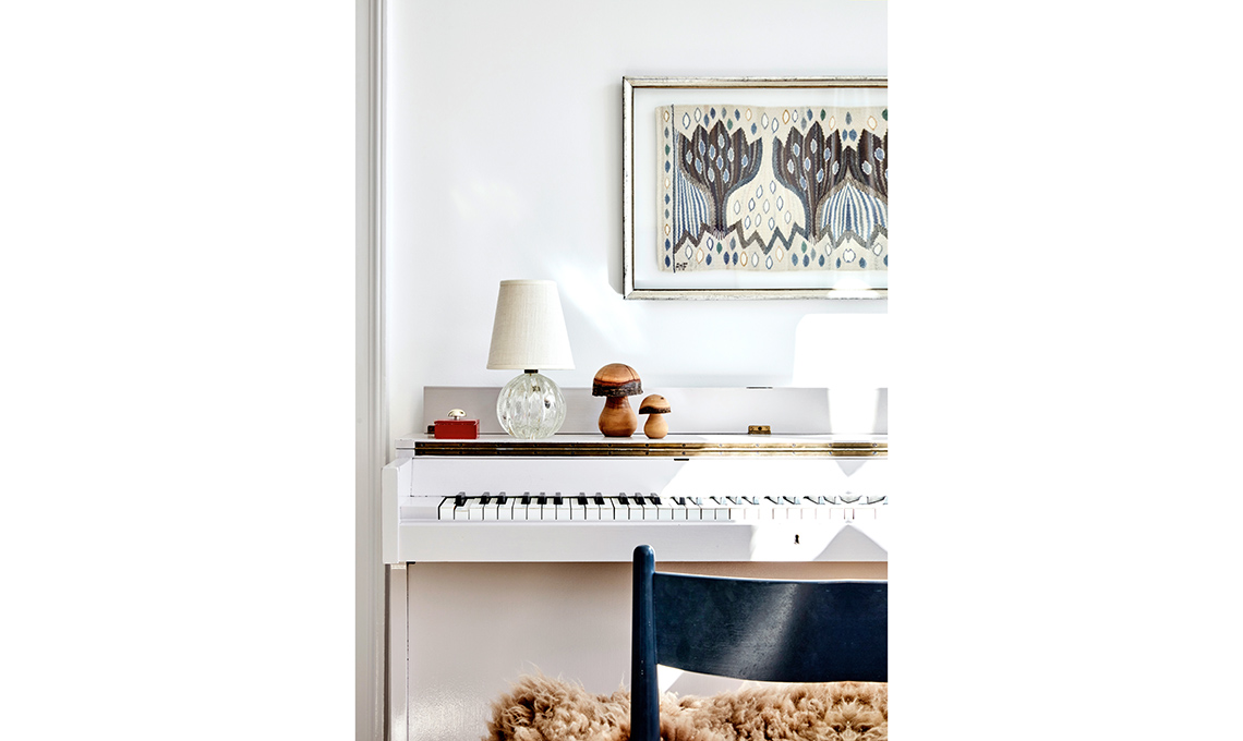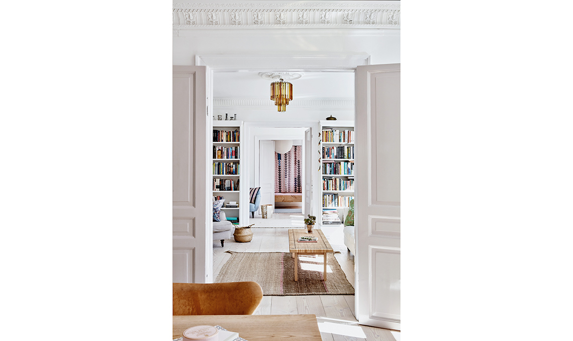 Il suo nido di Østerbro è un esercizio di delicati equilibri che si gioca sulle essenze del legno e la fisionomia iconica di qualche pezzo di design che sta a suo agio con un sofà inglese quanto con una cucina tradizionale.