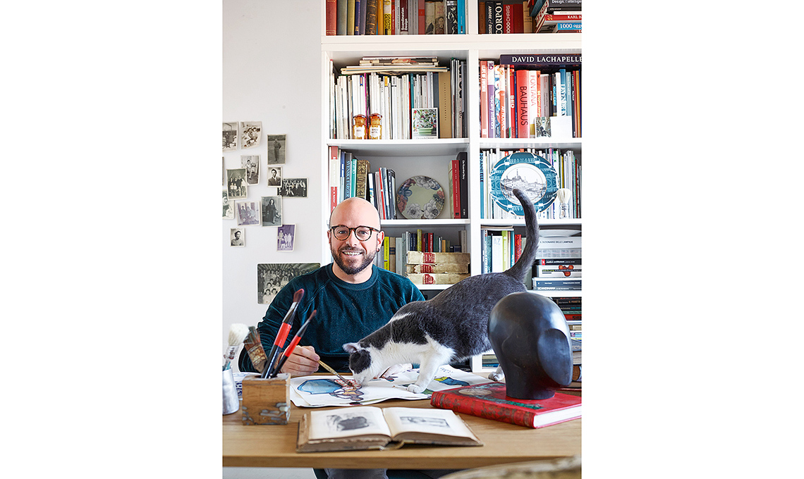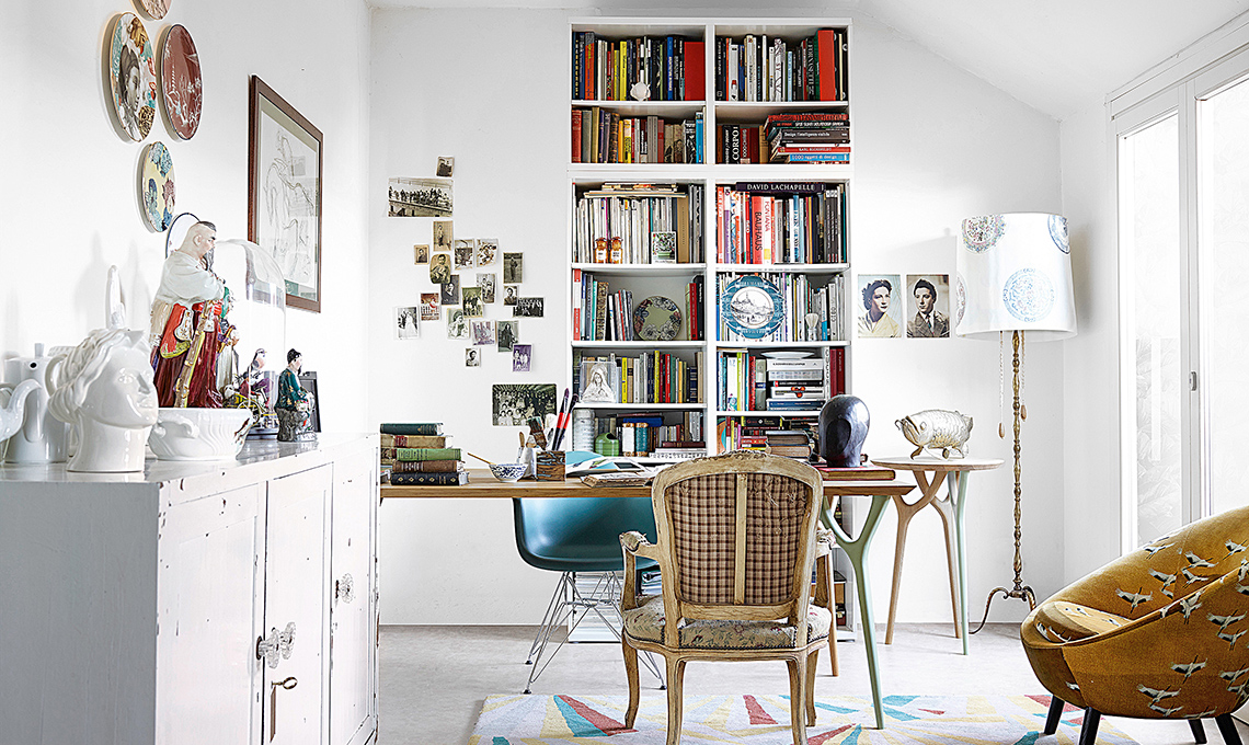 Africa e India, l’amore per i viaggi e una certa nostalgia per l’eleganza Anni ’50 hanno guidato Vito nel comporre il sottotetto in cui abita, recuperato con una ristrutturazione dieci anni fa. La passione per il décor gli è stata instillata dalla bisnonna materna: la sua casa era un vero regno del décor. Da bambino, si innamora delle carte da parati che la nonna si faceva recapitare da Parigi, dei vetri di Murano, di un enorme coccodrillo imbalsamato che aveva trasformato in tavolino... La sua prima casa milanese è stata come una tela bianca sulla quale disegnare il suo mondo.