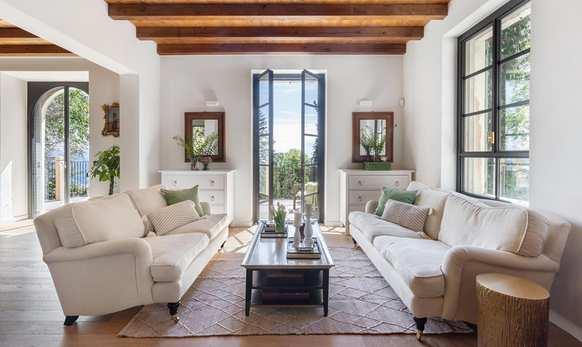 Meghan ha scelto un mix di classico e vintage abbinato a una palette di toni neutri che esalta le travi a vista e rende protagonista il panorama esterno.