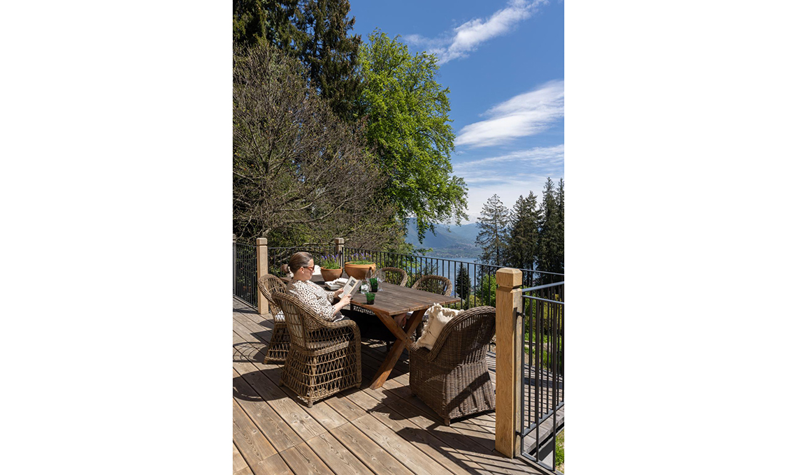 Meghan e Tomas vivono a Londra e cercano una casa per le vacanze in Italia. La storia di come siano arrivati a scoprire questa villa Liberty all’Alpino, un tempo località di villeggiatura nobile tra il Lago Maggiore e il Mottarone, è un incastro di circostanze fortunate. Una collega italiana di Meghan suggerisce la zona, la coppia si imbatte nell’elegante dimora che, incredibilmente, è in vendita. «Ci hanno incantato la vista sul lago e la facciata» dice Meghan. «Con una ristrutturazione completa l’abbiamo adattata ai nostri bisogni e ora ci viviamo tutto l’anno. E ha un nome splendido: Le Pré Fleuri, vale a dire Il Prato Fiorito».