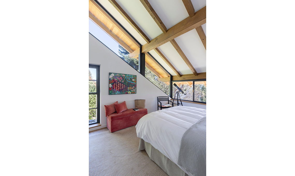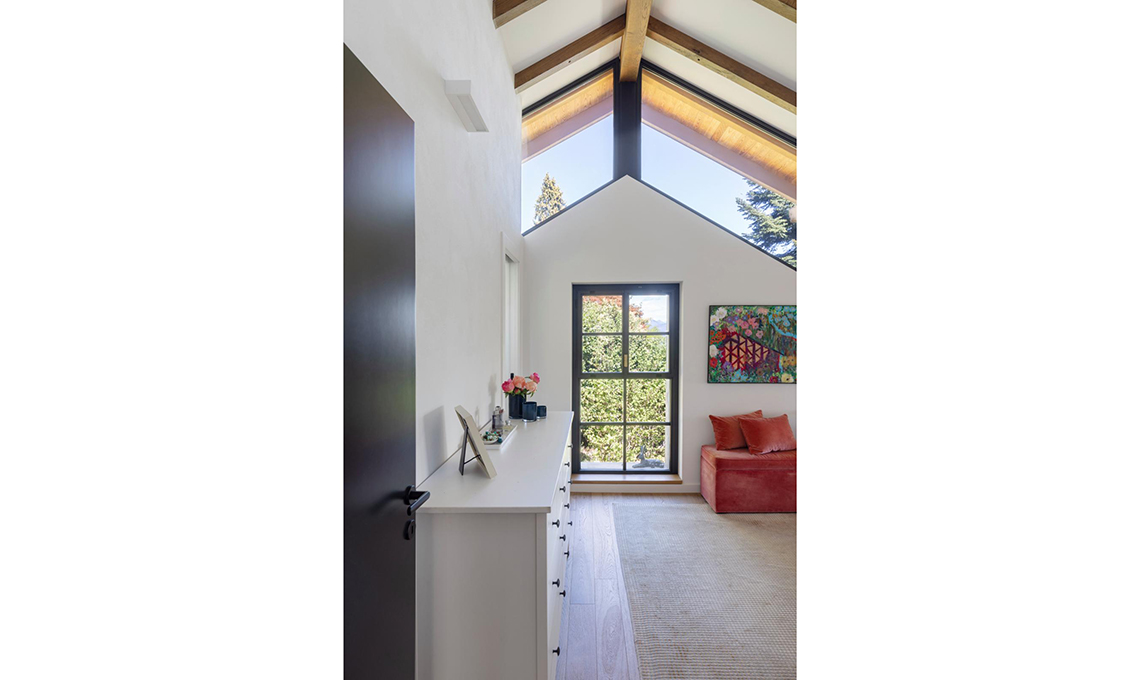 è nella mansarda, che aveva un’altezza ridotta. «Mio marito è alto un metro e 80 e il soffitto inclinato gli dava claustrofobia» racconta Meghan. «L’architetto ha suggerito di sollevare il tetto e di aggiungere finestre a nastro su tutto il perimetro». Geniale!