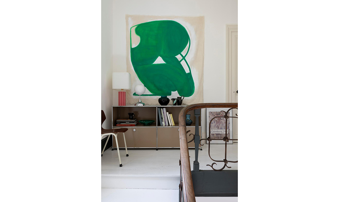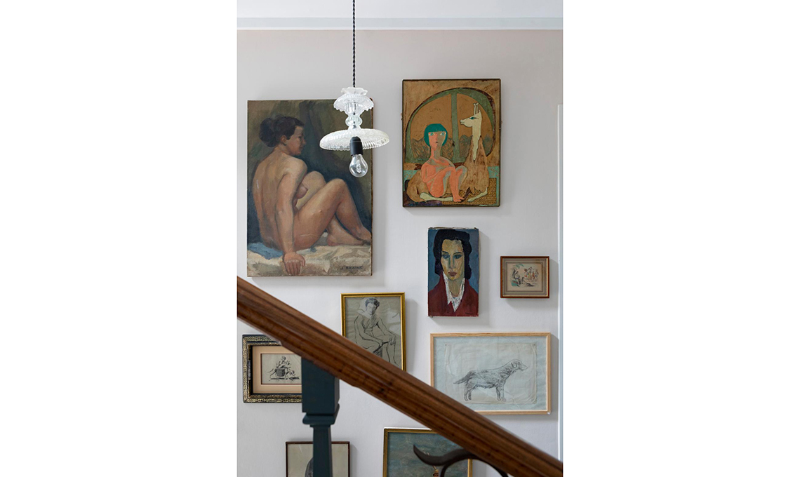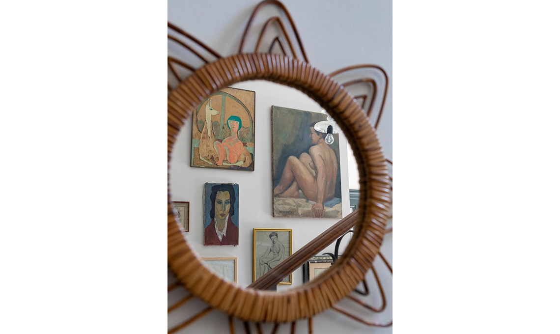 Per alleggerire, Sonia ha appeso anche tele nude, alternate ad altre dalle cornici semplici e sottili. Punto di stile: una presenza forte sono i ritratti, i dipinti e i disegni a carboncino che si mescolano con innata grazia.