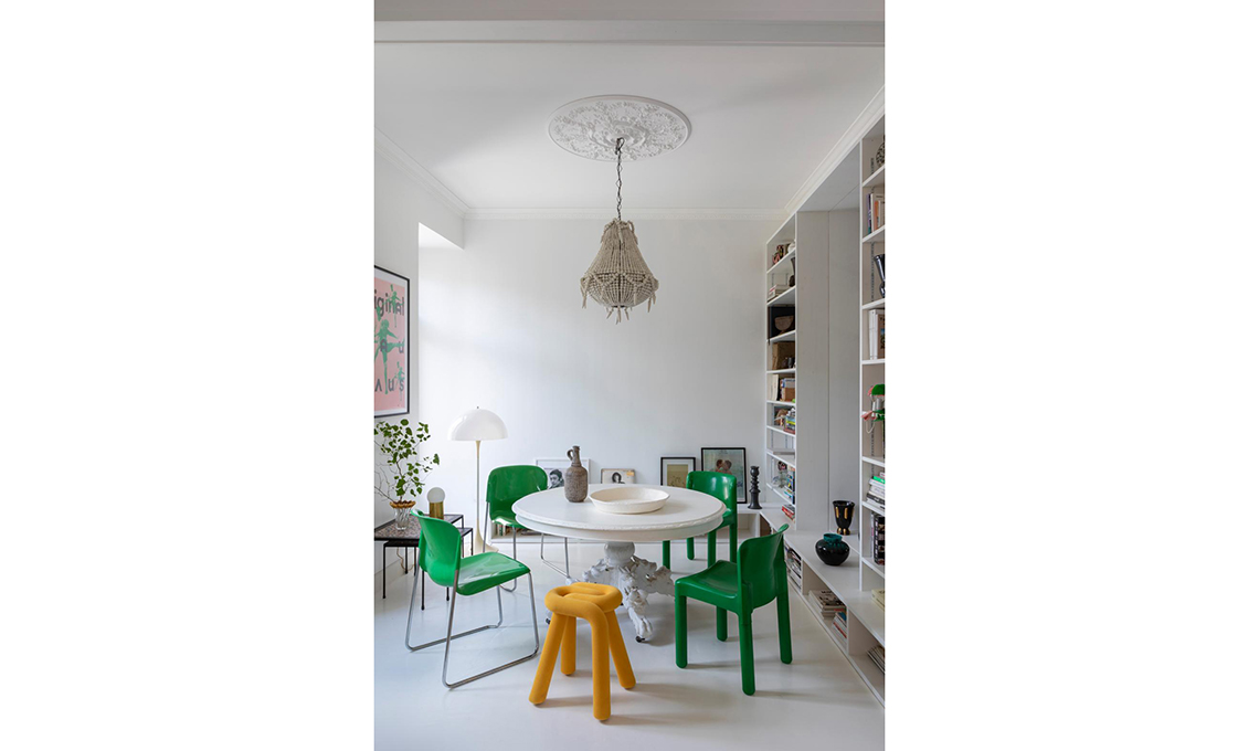 Insolito e con risvolti pop l’accostamento tra il tavolo in stile Enrico II (Francia, XVI secolo) trovato in un brocante e le storiche sedie 4875