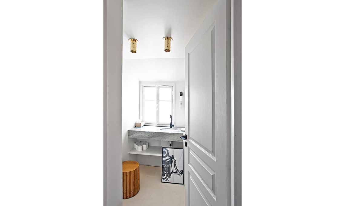 Sarah ha creato, in collaborazione con l’azienda francese Ressource una collezione di 36 tinte, tra le quali ce n’è anche una che porta il suo nome. È appunto il ‘Bleu Sarah’ che spicca sulla parete del living e rimbalza qua e là su alcuni dettagli della casa. Quando si dice... personalizzazione!
