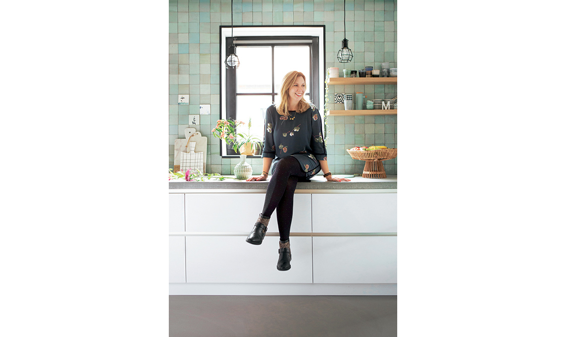 Marjolein ha collocato il piano di lavoro sotto le finestre e
