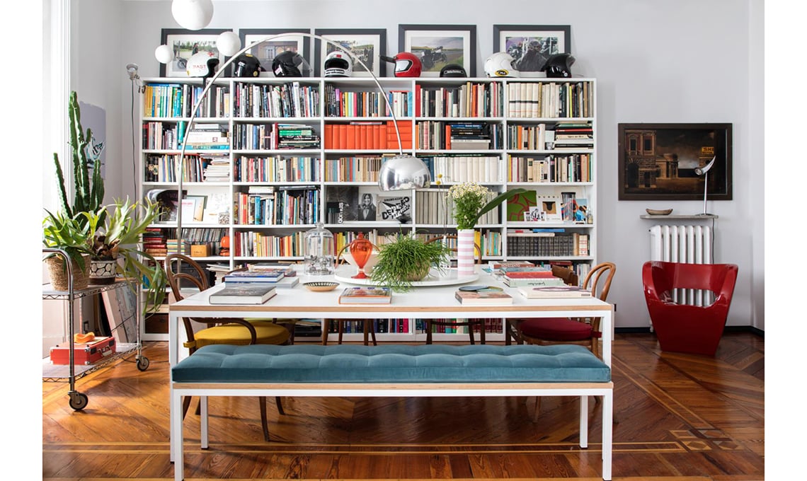 Al posto di un grande salotto con divani che era poco sfruttato, Clara ha voluto un grande tavolo: «Durante la pandemia ho deciso che appena possibile avrei organizzato tante cene con gli amici, volevo un tavolo spazioso dove poter stare comodi, chiacchierare e mangiare insieme». Qui ci si sta in dodici. «Quando il tavolo è arrivato ho avuto paura che fosse sproporzionato per